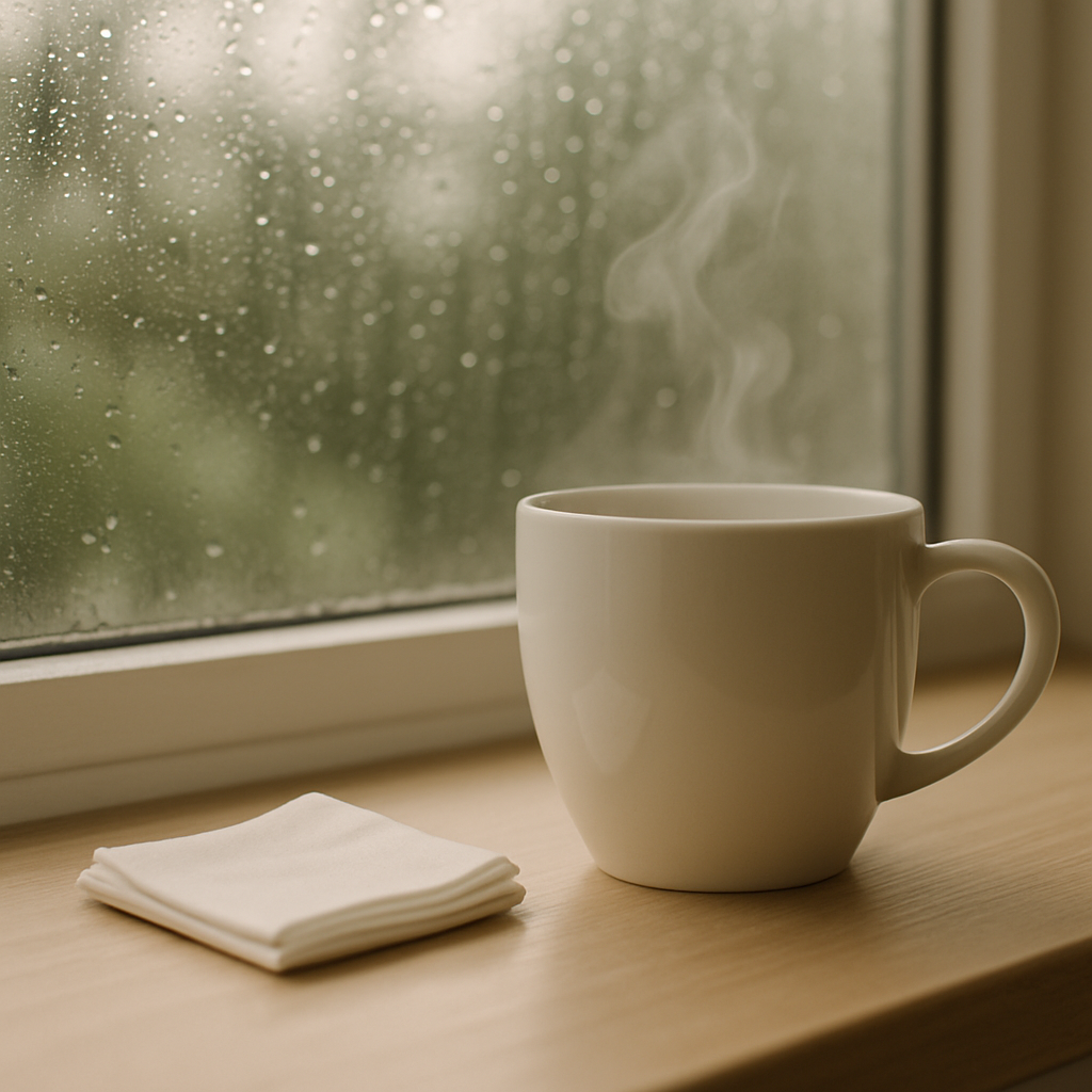 „Wenn Frau K. morgens die Küche betrat, stellte sie die Tasse immer ans Fenster. Nicht weil die Sonne schien — oft regnete es sogar — sondern weil sie den Blick auf den Garten brauchte. Wir wussten: Die Tasse bedeutet Frieden. Sie hat nie viel geredet am Morgen, aber die Tasse sprach für sie. Heute steht sie auf dem Tisch, und wenn wir daran vorbeigehen, fühlen wir ein bisschen von dieser Stille, die sie so sehr liebte.“